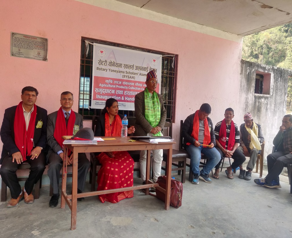 RYSAN has funded to Tipeni Consumers Committee of Sindhupalchowk of Bagmati Province for the construction an Agricultural Products Collection Center at Bhotenamlang Panch Pokhari Thangpal Rural Municipality Ward No. 7 Tipeni, in 2017-2018. The propose to build Collection Center is for collecting local agricultural products with the objective of poverty reduction through raising income of local peoples. The selection of place and community was done through visiting the places and interactions with the concerned stakeholders-political leaders, NGOs leaders, Social workers and School teachers gatherings. Tipeni Consumers Committee had built the Collection Center and the land was provided by the local Chhatrapaleshwori Secondary School .but due to landslides and COVID-19 pandemic, inauguration and handover couldn’t do it in time. Finally, RYSAN success to inauguration and handover it the inauguration and handover was done on 17th February 2023. Finally, RYSAN succeeded in inaugurating and handing over the collection center to the consumer group on 17th February.